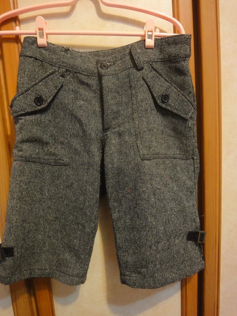 毛料膝上褲,大腿兩側為可調式鬆緊