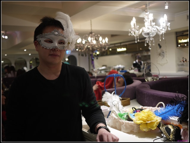 門口處~ 擺放著許多面具和頭飾任客人挑選拍照