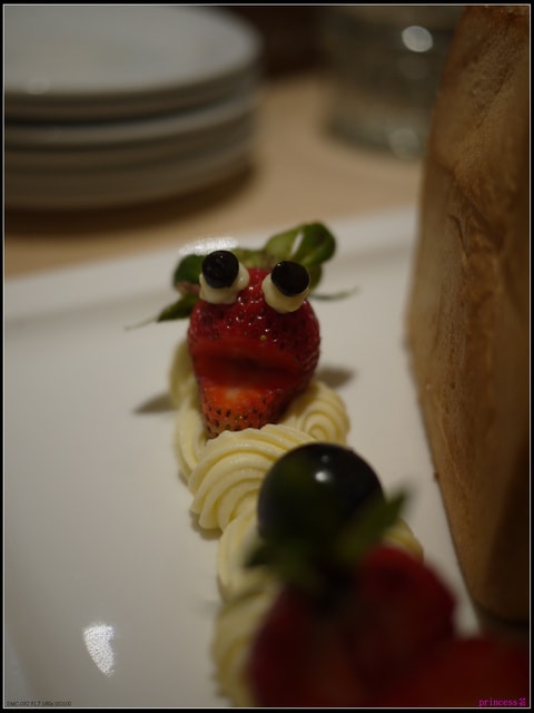 連餐點旁的草莓也用水果點綴的好可愛喔!!![]()